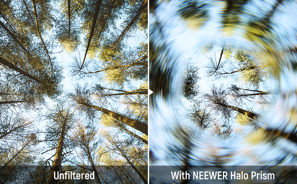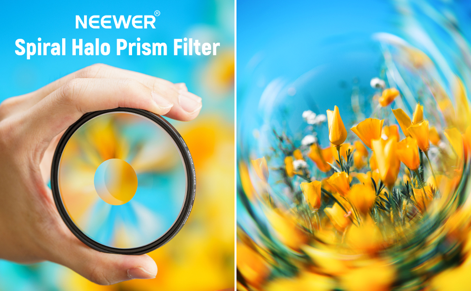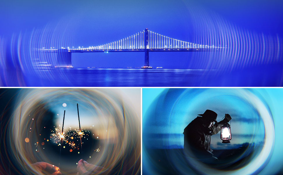 - 【Enchanting Spiral Halo Effect】 This prism effect filter frames your shots with a circular halo, keeping the image clear at the center stage while transitioning the background into a swirling, magnified blur, intensifying the mood and atmosphere without further post editing