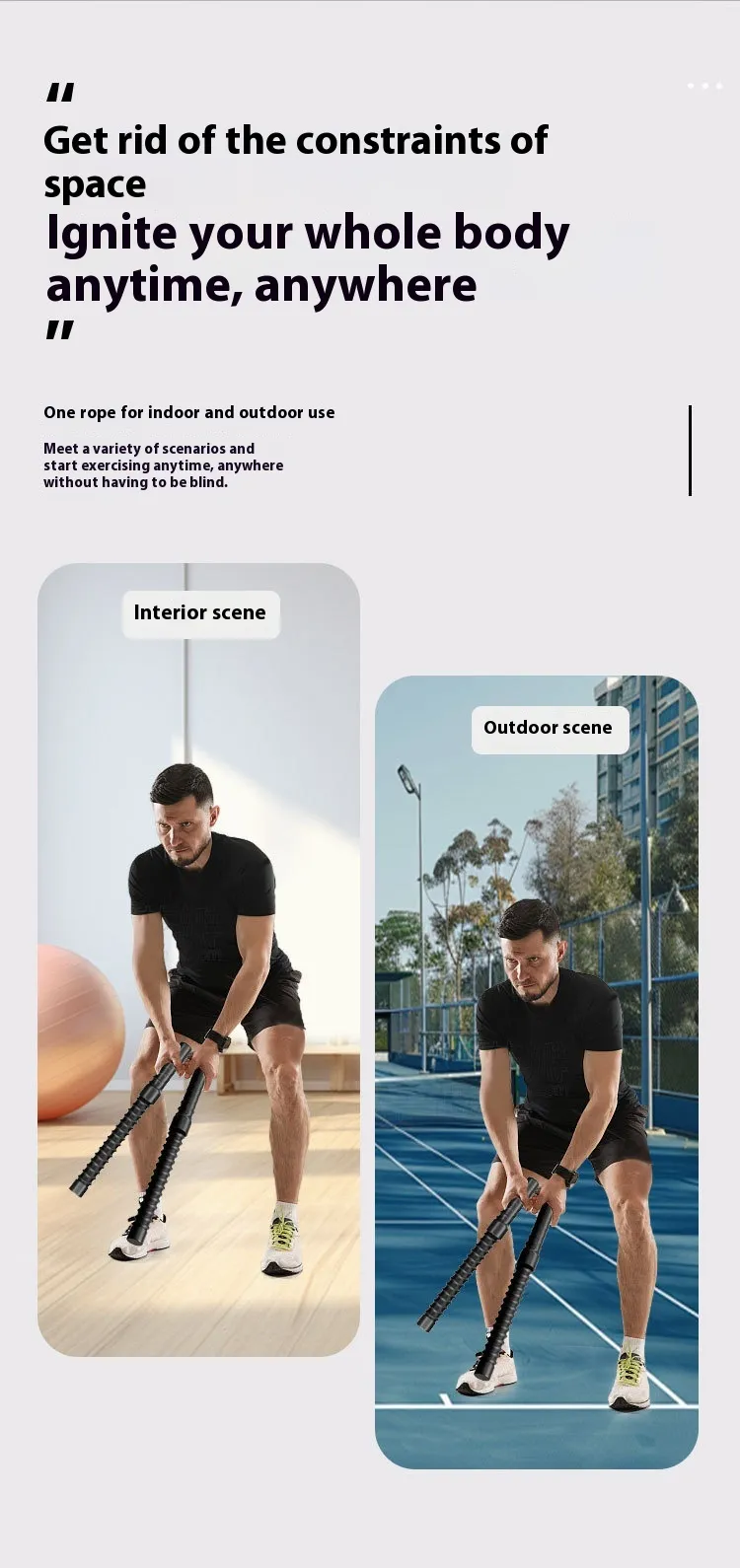 - 【Portable Cordless Exerciser Rope】This innovative wireless battle rope alternative replicates the dynamic swinging motion of traditional ropes while eliminating their cumbersome bulk. Engineered for compact convenience,lightweight, foldable design transforms home workouts into effortless.
