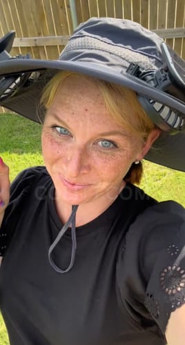 this hot summer days, but I love the wide brim, so it protects my neck and face from sunburn. The fan is awesome. It’s very strong.