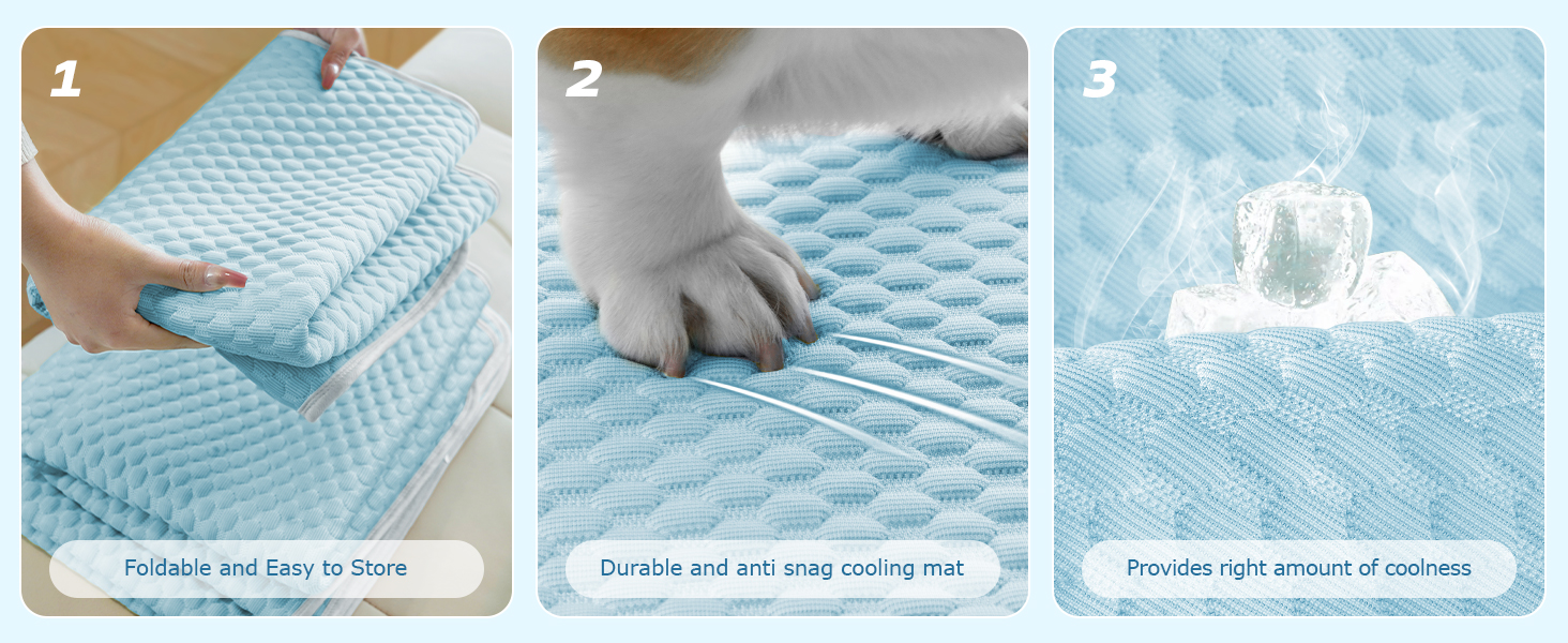 Durable Construction: Built to withstand frequent use, the cooling mat is made with materials that are resistant to wear