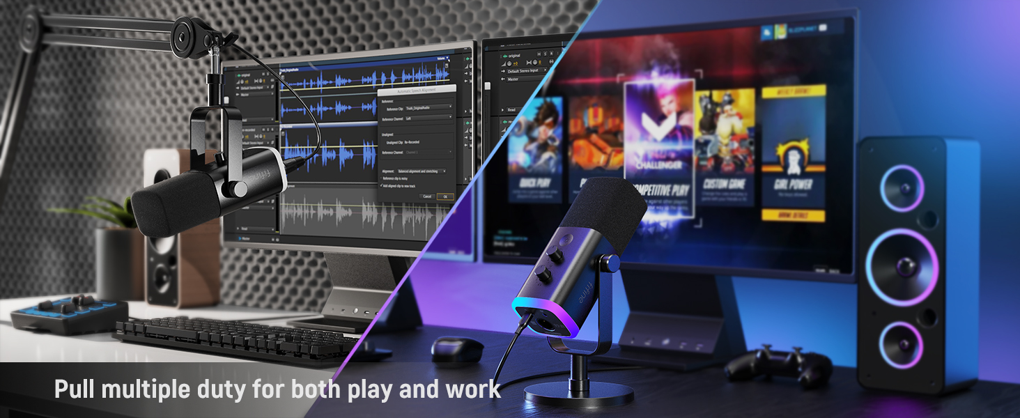 - [USB Connection with Handy Mute] Skip the hassle of setting something up and plug the cable to play the USB dynamic microphone directly, which suits for beginner creators or professionals’ daily podcast or conference work. You can quickly control desk microphone with tap-to-mute that is independent of computer/Macbook programs to keep privacy when live streaming. LED mute reminder helps you get rid of forgetting to cancel the mute. (Only available for USB connection)