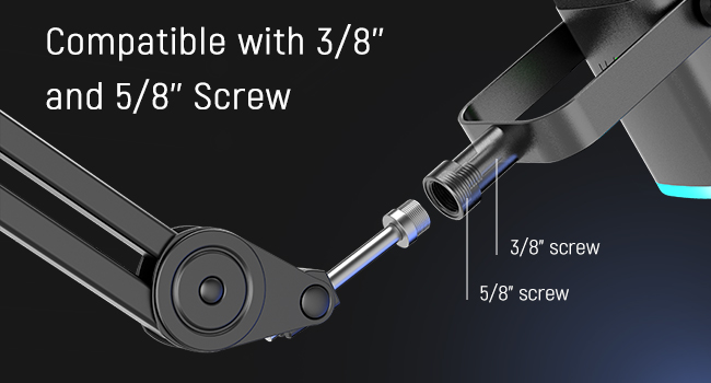 Adjust the thumbscrew to change the XLR streaming microphone angle. More angle and height adjustments enable you to obtain the most suitable recording distance when use the gaming dynamic USB mic, to output more desired audio.
