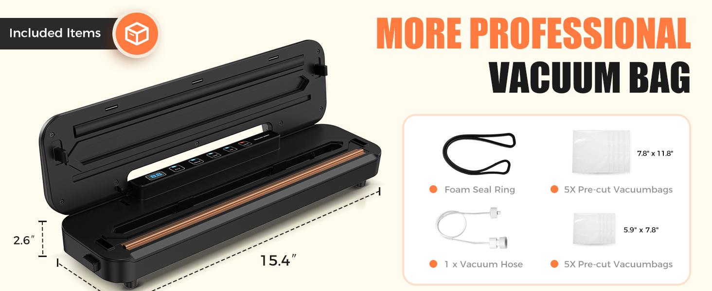 Reusable Vacuum Sealing Bags: Comes with a set of reusable vacuum sealing bags, reducing the need for disposable plastic.
