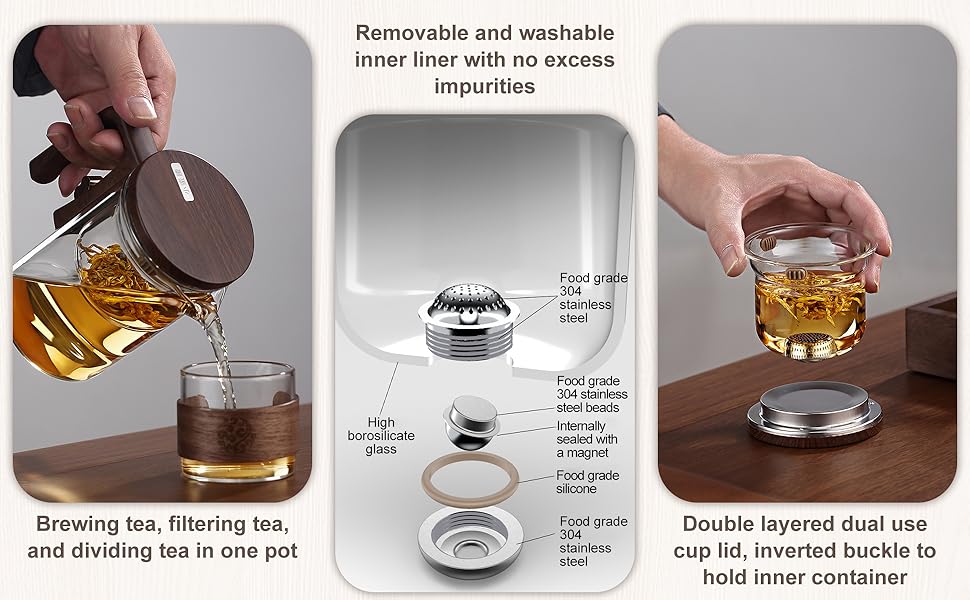 The one-click magnetic switch provides fast, controlled tea separation, ensuring your brew remains perfect without manual straining. The filtration system catches tea leaves effectively, allowing only clean liquid to pass through. This makes the Harmony Pot exceptionally easy to use even for beginners.