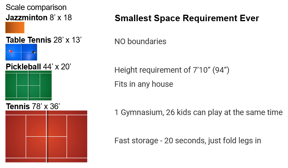 - PLAY INDOORS AND OUTDOORS: Jazzminton Sport is built for indoors or outdoors, even in windy conditions. Play in any season, Winter in the north or Summer in the south. We have different birdies for every condition. Play right in your own living room, the height is 7ft 6inches and is 5ft 1inch wide suitable for all houses allowing you to play even when it's too cold, too hot or rainy outside.