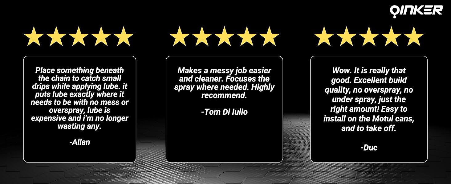 - Fits All Cans: Compatible with any standard aerosol can. Motul and Silkolene users—remove the built-in straw by pulling upward and attach our included nozzle.