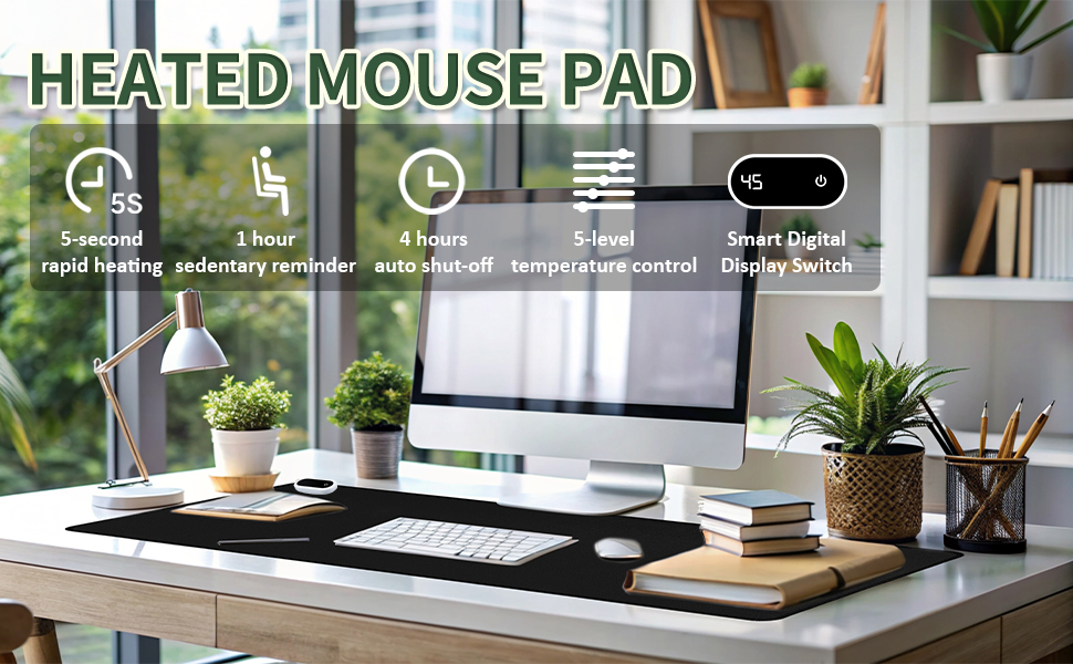 【8 Control Levels】Heated desk pad for keyboard and mouse. The heated mouse pads have 8 levels of