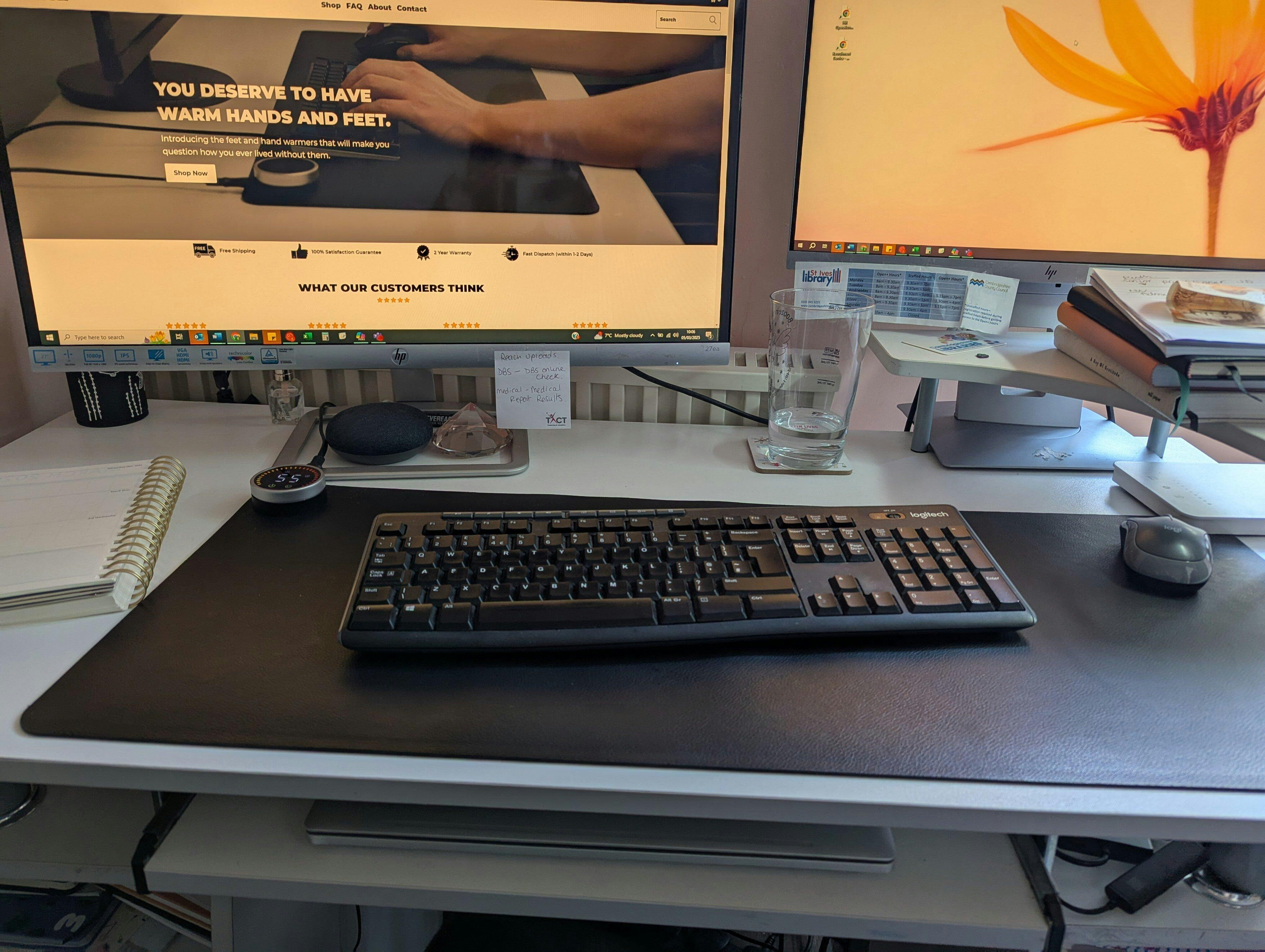 During the winter months, I suffer from cold hands that in turn causes pains in my knuckles. I have been thinking about getting a heating desk pad for a while now, but found very mixed reviews online. I read the reviews on the Heatka website and decided to take the plunge, & I couldn't be happier. I have the temperature set at 35 which seems to work well for me all day, the additional auto timeout is a great feature & means its never left on by mistake. My keyboard, mouse & wrist rest all sit on the mat with no issues, it does get a little hotter under the keyboard, but that certainly doesn't have an impact on the equipment in anyway.